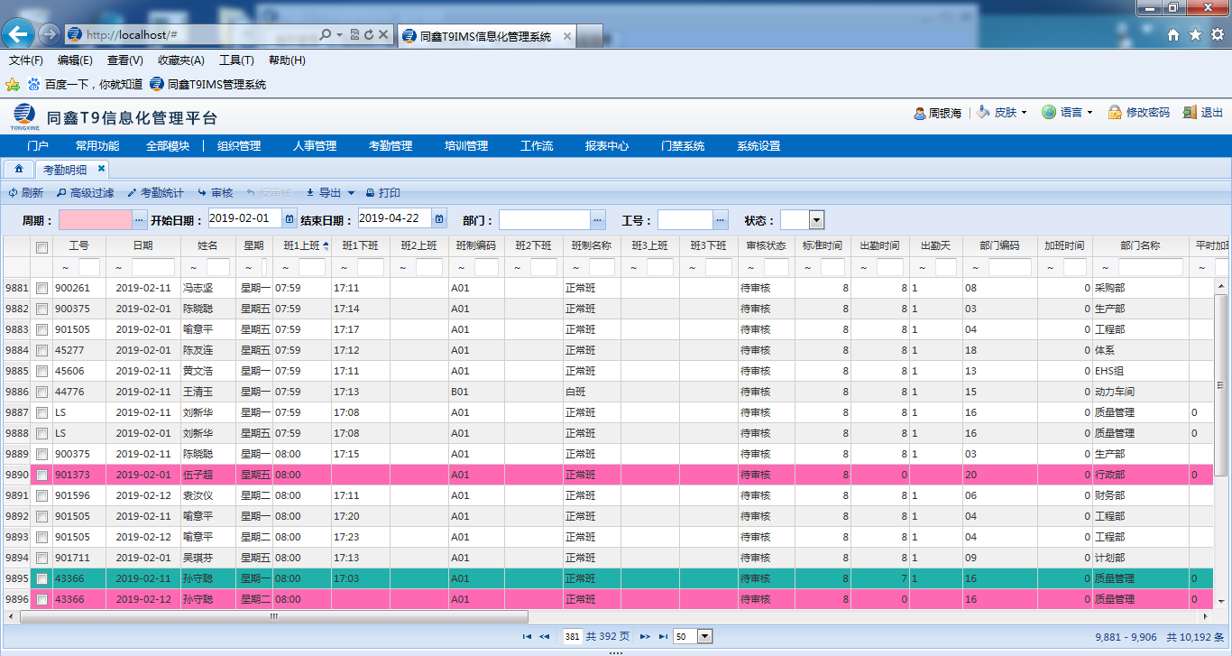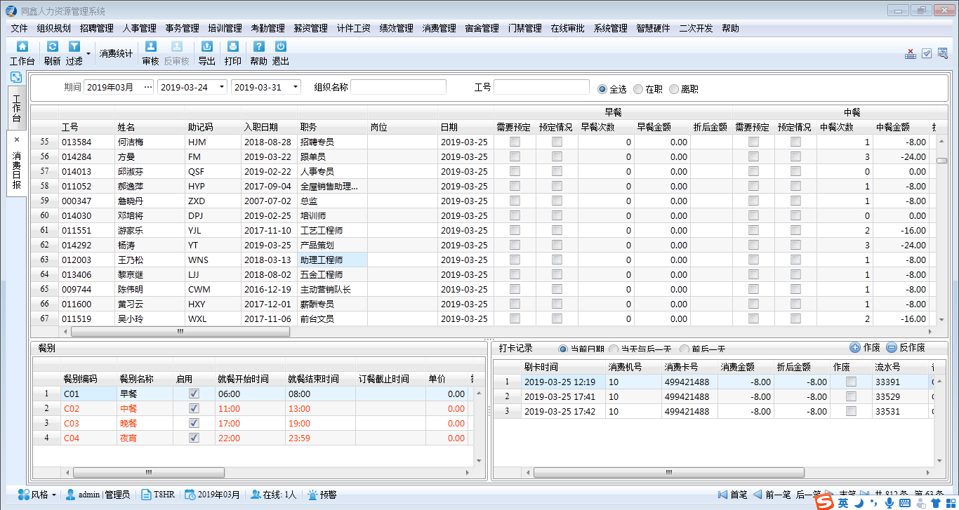 2.同鑫人力資源管理系統(tǒng)上線情況:上線模塊有,人事/事務(wù)/考勤/門禁/消費/報表等